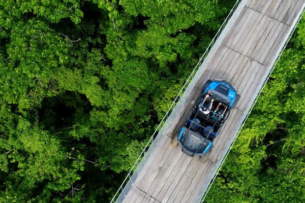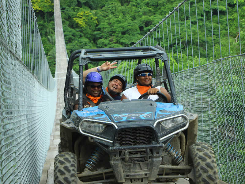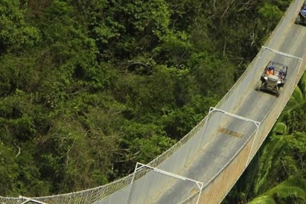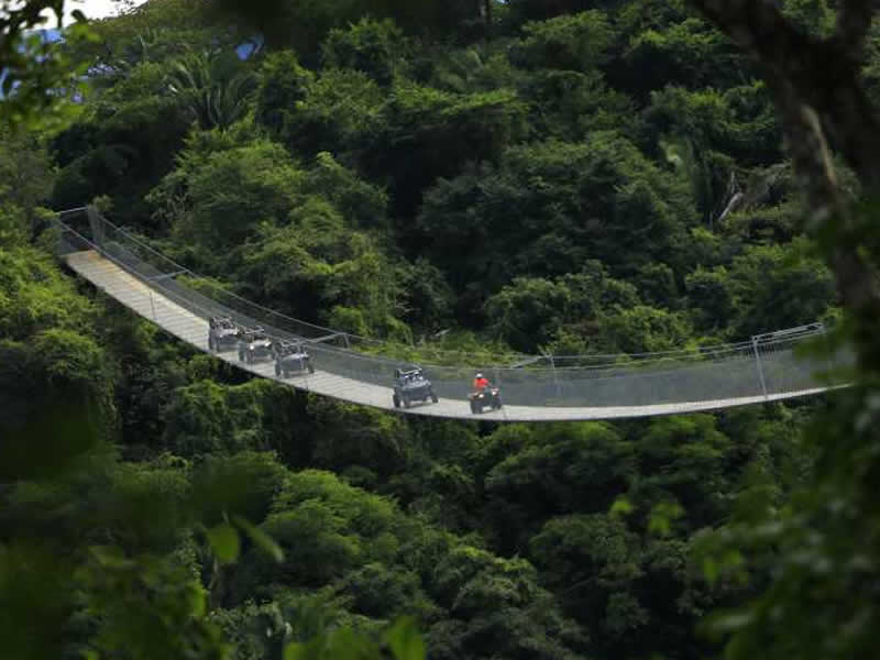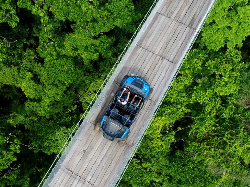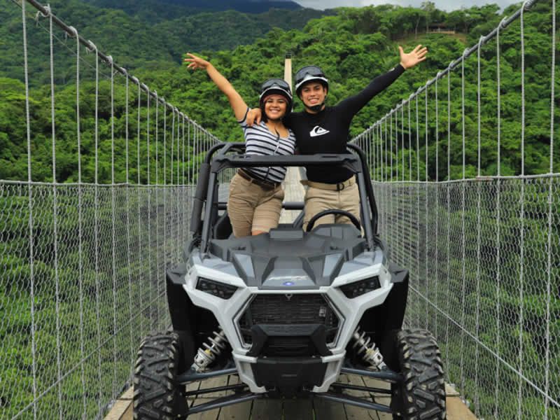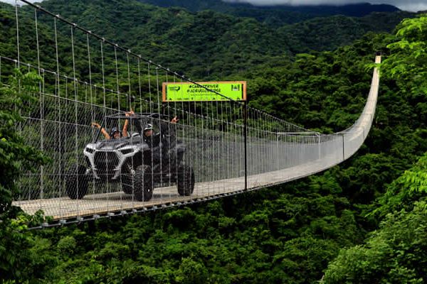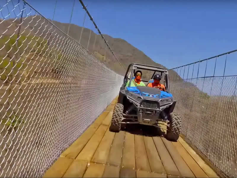 A bordo de un vehículo todoterreno cruzarás el puente colgante más largo del mundo con 470 metros de largo y 150 metros de altura, donde la adrenalina te hará disfrutar de un recorrido lleno de aventura por territorios cubiertos de terracería y un escenario natural que te robará el aliento complementado con una hermosa cascada, perfecta para nadar con tu familia o amigos.