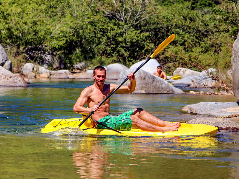 En nuestra última línea, corra hasta la meta y vea quién aterriza primero mientras ingresa a nuestro Tequila Bar and Riverfront Restaurant. Después de la tirolesa, disfrute de una comida tradicional mexicana y deléitese con unas deliciosas bebidas, refrésquese en el río o descubra nuestro santuario de animales.