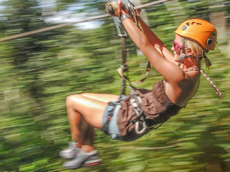 Empiezas yendo de copa de árbol a copa de árbol y, a partir de ahí, las filas se vuelven más largas y rápidas, y las vistas se vuelven más espectaculares. Black Diamond le permite volar 500 pies sobre el dosel de la jungla a velocidades de hasta 30 mph por más de ¼ de milla.