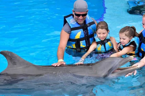 Este programa podrás disfrutarlo desde una plataforma que cubrirá la mitad de tu cuerpo sin necesidad de nadar. Un entrenador profesional te contará todo acerca de los mamíferos marinos y tus amigos los delfines te darán cariño ilimitado, te saludarán, te cantarán y podrás acariciarlos.